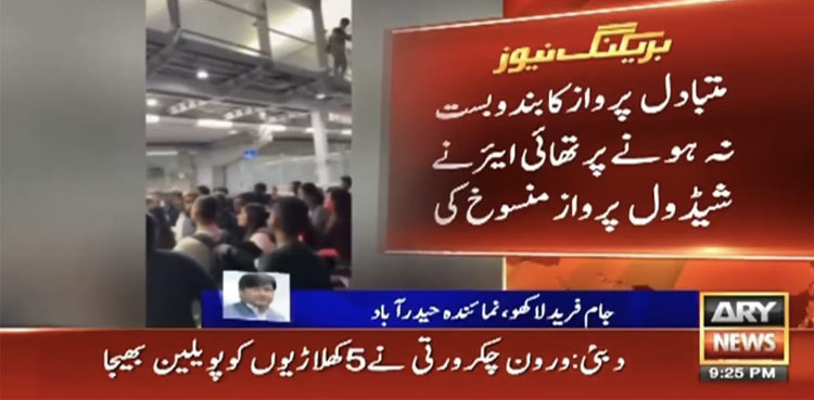 سڈنی سے کراچی آنے والے پاکستانی مسافر گزشتہ دو روز سے بینکاک ایئرپورٹ پر پھنسے ہوئے تھے، پاکستانی مسافروں کو چھ گھنٹے تک متبادل پرواز کیلیے انتظار کرایا گیا اوربندوبست نہ ہونے پر تھائی ایئرنے شیڈول پرواز منسوخ کردی تھی۔