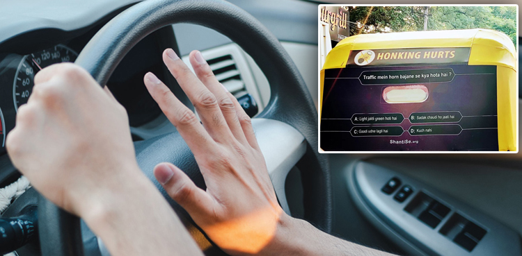 دہلی سے تعلق رکھنے والے ڈرائیور نے اپنے رکشہ کے پیچھے ٹریفک میں ہارن کا استعمال کرنے والوں کو مخاطب کرتے ہوئے ”کون بنے گا کروڑ پتی“ کے انداز میں سوال پوچھا۔