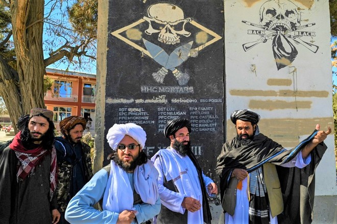 غیرملکی خبررساں ادارے کی رپورٹ کے مطابق افغان صوبے غزنی صوبے میں گورنر ہاؤس کے احاطے میں طالبان جنگجوؤں کے سامنے امریکی فوج کے سابق بیس کی دیواروں کے کچھ حصوں کو نمائش پر لگایا گیا۔