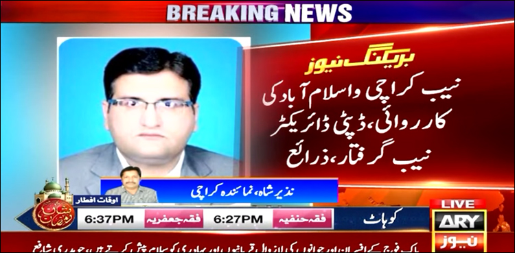 تفصیلات کے مطابق نیب کراچی اور اسلام آباد نے ایک کارروائی میں کرپشن کے الزام پر ڈپٹی ڈائریکٹر نیب عمران شیخ کو گرفتار کر لیا۔