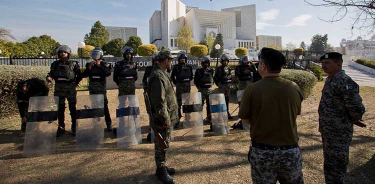 اسلام آباد : سپریم کورٹ میں رینجرز،ا یف سی اورپولیس کی نفری تعینات کردی گئی، کمرہ عدالت نمبر ایک میں صرف کیس کے فریقین داخل ہو سکیں گے۔