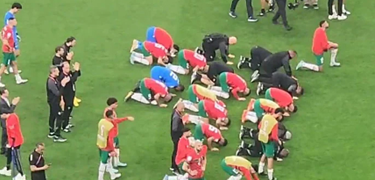 گزشتہ شب قطر میں فیفا ورلڈ کپ 2022 کے دوسرے سیمی فائنل میں پہلی بار فائنل فور میں پہنچنے والی عرب مسلم ٹیم مراکش دفاعی چیمپئن فرانس سے شکست کھا گئی تاہم اس ہار کے باوجود مراکشی کھلاڑیوں نے میدان میں سجدہ شکر ادا کیا جس کی ویڈیو وائرل ہوگئی اور کھلاڑیوں کی اس انکساری نے سب کے دل جیت لیے۔