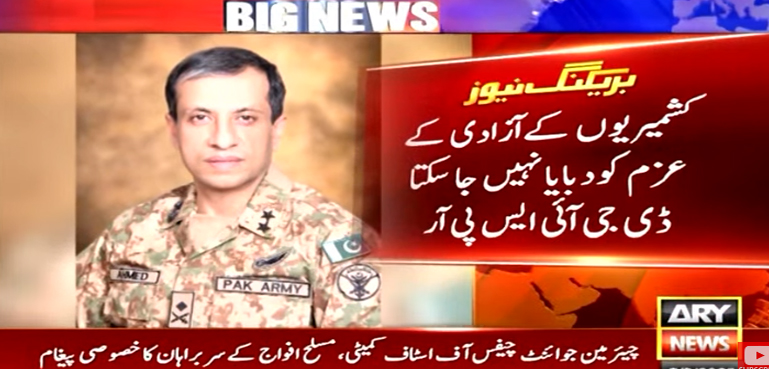 عسکری قیادت کا کہنا ہے کہ انسانی حقوق کی خلاف ورزیاں اور مظالم کشمیریوں کی جدوجہد آزادی کو دبا نہیں سکتے۔ کشمیریوں کو اقوام متحدہ کی قراردادوں اور ان کی خواہشات کے مطابق مستقبل کے فیصلے کا حق ملنا چاہیے۔