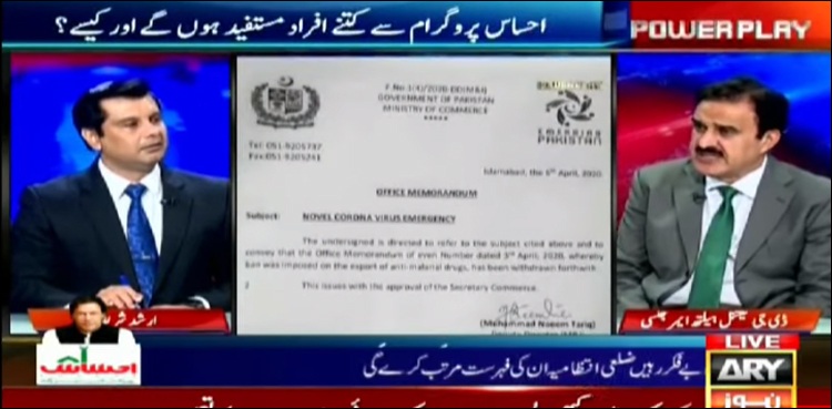 اے آر وائی نیوز کے پروگرام پاور پلے میں میزبان ارشد شریف کے ہمراہ گفتگو کرتے ہوئے ڈی جی نیشنل ہیلتھ ایمرجنسی کا کہنا تھا کہ اینٹی ملیریادواؤں کی اتنی مقدار موجود ہے کہ اسے ایکسپورٹ کرسکتے ہیں۔