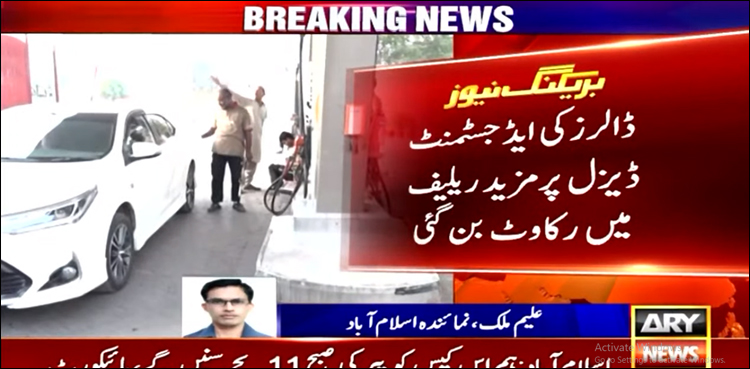 اسلام آباد: شہری ڈیزل پر تقریبا 3 روپے فی لیٹر کے مزید ریلیف سے محروم ہو گئے، ڈالرز کی ایڈجسٹمنٹ ڈیزل پر مزید ریلیف میں رکاوٹ بن گئی۔