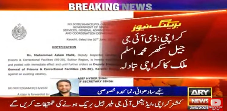یہ پڑھیں: ملیر جیل واقعہ: آئی جی جیل خانہ جات عہدے سے برطرف، سپرنٹنڈنٹ معطل