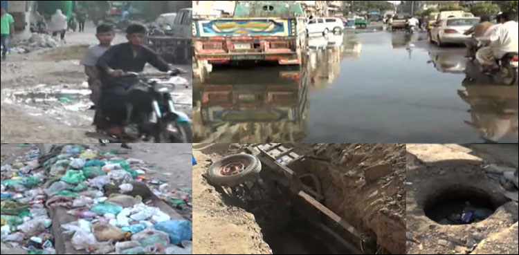 یوں تو پورے شہر قائد کا نظام ہی بدحالی کا شکار اور شہری بدترین مشکلات سے دوچار ہیں لیکن سرکاری سطح پر کراچی کا ماڈل ضلع قرار دیا جانے والا ڈسٹرکٹ ساؤتھ (ضلع جنوبی) ہے، جہاں جگہ جگہ کچرا کنڈیاں بنی ہیں اور سیوریج کا پانی سڑکوں پر موجود ہے جبکہ سڑکیں چھ چھ پہینے سے کھدی پڑی ہیں۔