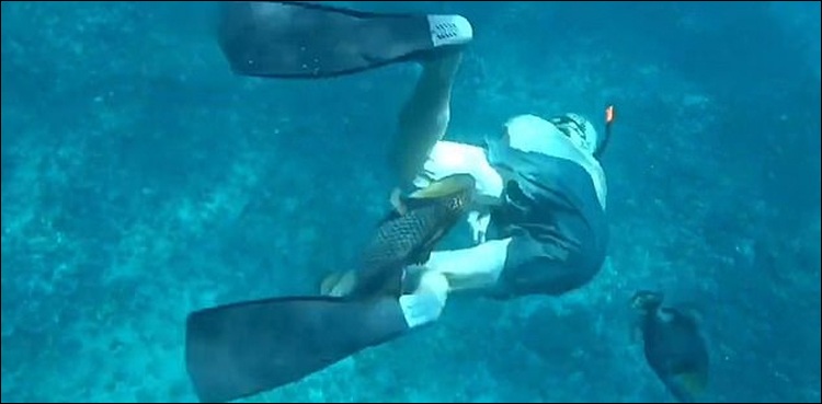 سوشل میڈیا پر ایک ویڈیو وائرل ہوئی جس میں ٹائیگر نامی مچھلی کو زیر آب تیراکی کرنے والے دو غوطہ خوروں پر حملہ آور ہوتے دیکھا جاسکتا ہے، مچھلی نے پہلے ان غوطہ خوروں کو اپنے علاقے میں تیراکی پر خبردار کیا اور اس کے بعد ایک غوطہ خور پر حملہ کردیا۔
