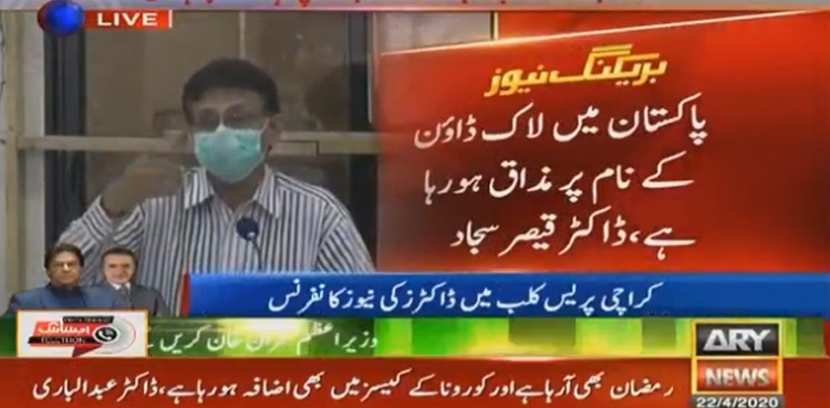 کراچی پریس کلب میں میڈیا نمائندگان سے گفتگو کرتے ہوئے ڈاکٹر قیصر سجاد کا کہنا تھا کہ بہت سارے لوگ کرونا وائرس کو مذاق سمجھ رہے ہیں، شہر میں دکانیں کھلی ہوئی ہیں جس پرکوئی توجہ نہیں دی جارہی، عوام اور حکمرانوں کو یہ سمجھنا ہوگا کہ ہمارے پاس اسپتالوں میں جگہ موجود نہیں ہے، پاکستان کا شعبہ صحت بہت کمزور ہے۔