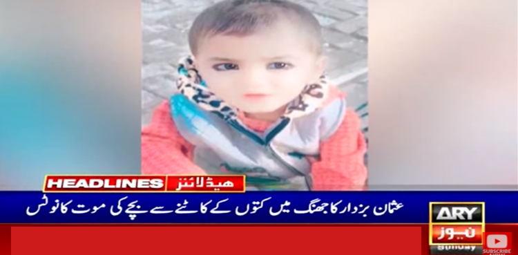 جھنگ میں دوستوں کے ساتھ کھیلتے 5 سالہ بچے کو آوارہ کتوں نے بھنبھوڑ ڈالا جس کی لاش قبرستان سے ملی وزیراعلیٰ نے واقعے کا نوٹس لے لیا ہے۔