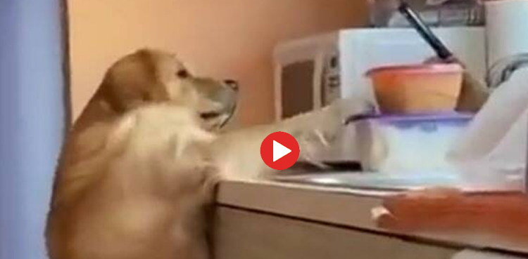 اس ویڈیو میں ایک معصوم پالتو کتے کو کھانا چوری کرتے اور پکڑے جانے پر شرمندہ ہوتے ہوئے دیکھا جاسکتا ہے۔
