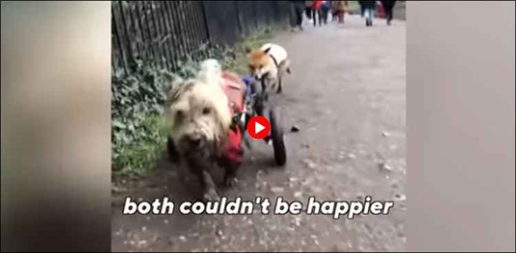 بین الاقوامی میڈیا رپورٹ کے مطابق برطانیہ میں ایک معذور کتے اور نایبنا لومڑی کی مثالی دوستی ہے، دونوں دوست ایک دوسرے کے بغیر کہیں نہیں جاتے۔