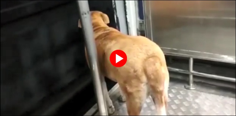 انٹرنیٹ پر وائرل ہونے والی ویڈیو میں دیکھا جاسکتا ہے کہ ایک کتا ٹرین میں سفر کررہا ہے اور وہ اپنے اسٹیشن سے قبل دروازے پر آکر کھڑا ہے۔