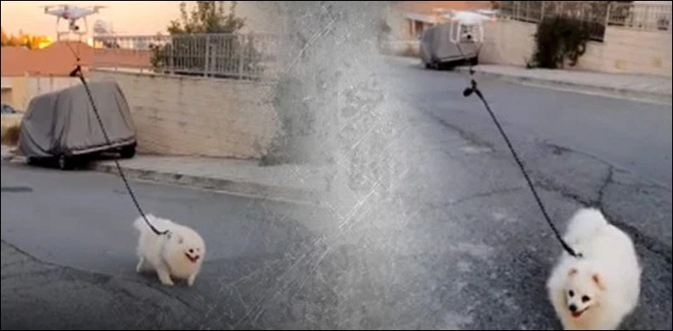 کتے پر نظر رکھنے کے لیے مالک ڈرون کیمرے کا استعمال کرتا ہے۔ مالک کا کہنا ہے کہ وہ اس طرح بالکل بے فکر رہتا ہے۔