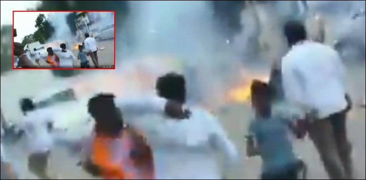 انٹرنیٹ پر سامنے آنے والی ویڈیو میں دیکھا جاسکتا ہے کہ بی جے پی کے کارکنان کے پاس پٹاخے اور گیس کے غبارے تھے، انہوں نے جیسے ہی بم جلانے کے لیے ماچس جلائی تو زور دار دھماکا ہوا۔