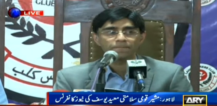 معیدیوسف کا کہنا تھا کہ پاکستان کی عسکری اور سیاسی قیادت ایک صفحے پر ہے، جب تک پاکستان کی اقتصادی ترقی نہیں ہو گی ملک آگے نہیں بڑھے گا، پاکستان کا ہدف اس خطے میں امن ہے، شاید ہی پاکستان میں کوئی دہشت گردی کاواقعہ ہو جس میں بھارتی فنگر پرنٹس نہ ہوں۔