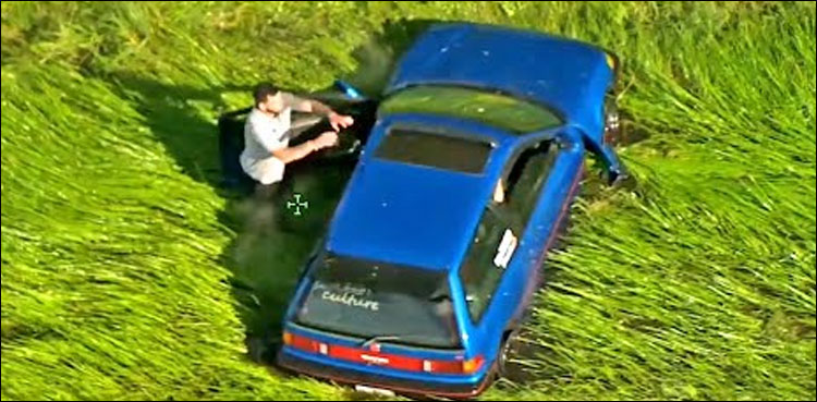 ویڈیو پولیس ہیلی کاپٹر کے ذریعے بنائی گئی ہے جو کار سوار کو روکنے کی کوشش کررہا تھا۔
