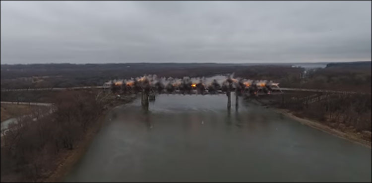 امریکی حکام نے الینوائس کے دریا پر بنے پل کو دھماکے سے اڑا دیا، دھماکے کی ڈرون ویڈیو سوشل میڈیا پر وائرل ہوگئی۔
