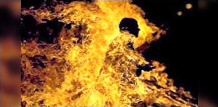 مذکورہ شخص دروازہ نہ کھلنے پر مشتعل ہوا اور اُس نے بیوی کو لغویات بکنا شروع کردیں۔ بعد ازاں اُس نے سنگین جرم کرتے ہوئے گھر کو جان بوجھ کر آگ لگائی۔