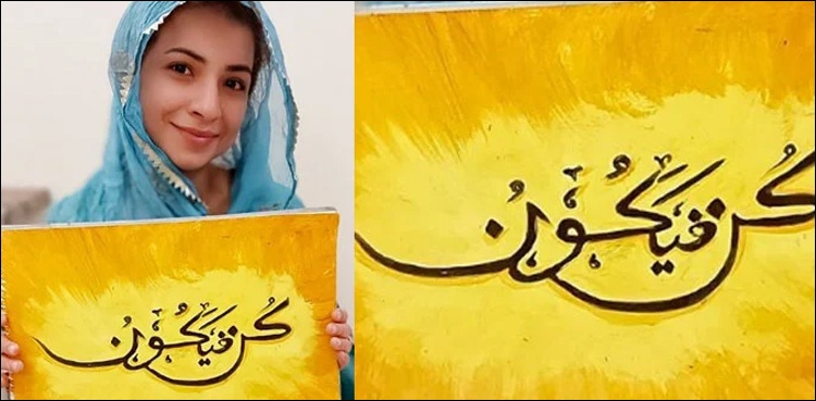 دعا ملک نے سماجی رابطے کی فوٹو شیئرنگ ویب سائٹ انسٹاگرام پر اپنے ہاتھ سے تیارہ کردہ پینٹنگ شیئر کی جس پر عربی کے الفاظ ’کُن فیکون‘ کی خطاطی کندہ ہے۔