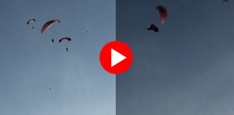 دوران پرواز پیراگلائیڈرز آپس میں ٹکرا گئے، پھر کیا ہوا؟ بچے ویڈیو نہ دیکھیں