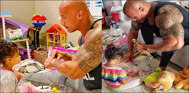 ہالی ووڈ اسٹار ڈوین جانسن نے انسٹاگرام پر بیٹیوں کے ہمراہ ویڈیو شیئر کی، چھوٹی بیٹی والد سے ایک کھلونا خریدنے کا کہتی ہے جس پر جس پر وہ کہتے ہیں ہمارے پاس گھر پر پہلے ہی یہ تین ہزار کی تعداد میں موجود ہیں، جس پر ان کی بیٹی وہ کھلونا چھوڑ کر دوسرا خریدنے کا کہتی ہے جس کے جواب میں وہ کہتے ہیں یہ تو پہلے ہی ہمارے پاس 6 ہزار ہیں۔