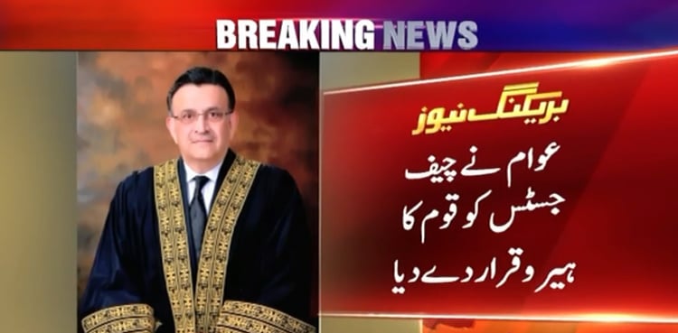 عوام نے چیف جسٹس آف پاکستان کو قوم کا ہیرو قرار دے دیا اور کہا آئین میں نوے روز میں الیکشن کی شق ہے، چیف جسٹس نے آئین ٹوٹنے سے بچالیا۔