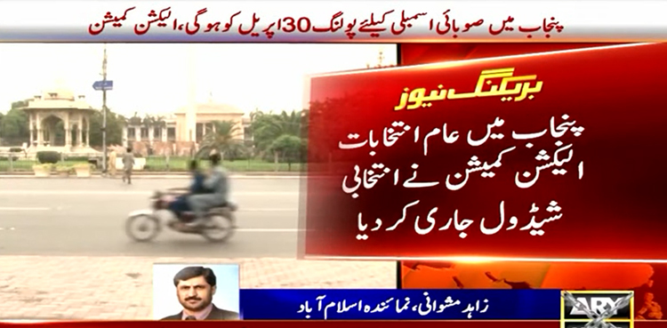 اسلام آباد : پنجاب میں عام انتخابات کے لئے انتخابی شیڈول جاری کر دیا گیا، جس کے تحت پولنگ 30 اپریل کو ہوگی۔