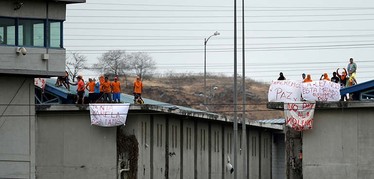 رپورٹ کے مطابق ایکواڈور کی جیل میں دو گینگز کے درمیان خونیں تصادم کے دوران صورتحال اس وقت انتہائی تشویشناک ہوگئی جب قیدیوں نے جیل کے 15 محافظوں اور عملے کو یرغمال بنا لیا۔ تصادم کے نتیجے میں 31 قیدی ہلاک ہوگئے۔