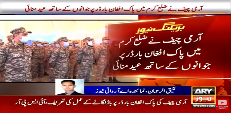 پاک فوج کے شعبہ تعلقات عامہ آئی ایس پی آر کے مطابق آرمی چیف قمرجاویدباجوہ عید کے روز پاک افغان بارڈر پہنچے جہاں انہوں نے سرحد پر موجود جوانوں کے ساتھ وقت گزارا۔