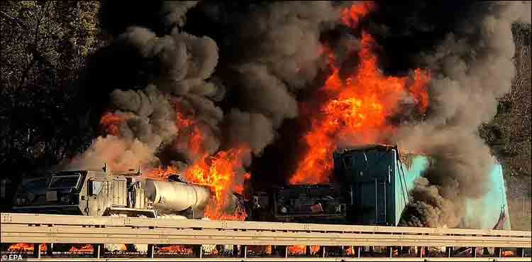 غیرملکی خبر رساں ادارے کی رپورٹ کے مطابق فائر فائٹرز نے گاڑیوں میں لگی آگ پر قابو پالیا ہے۔