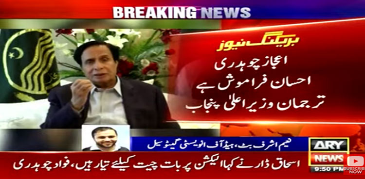 تفصیلات کے مطابق پاکستان تحریک انصاف کے نائب صدر اور سینیٹر اعجاز چوہدری کی جانب سے دئیے گئے بیان پر ترجمان پرویز الہیٰ نے سخت ردعمل کا اظہار کیا ہے۔