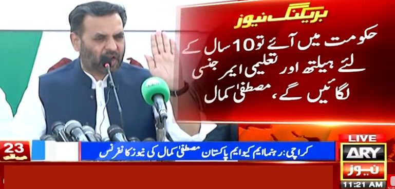 ایم کیو ایم پاکستان کے رہنما مصطفیٰ کمال نے کہا ہے کہ اگر حکومت میں آئے تو ملک میں صحت اور تعلیم کیلیے ایمرجنسی لگائیں گے۔