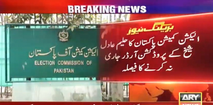 الیکشن کمیشن کا حلیم عادل شیخ کے پروڈکشن آرڈر جاری نہ کرنے کا فیصلہ