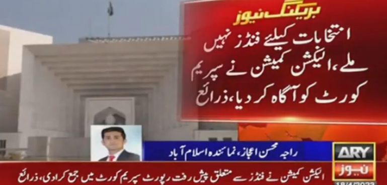 واضح رہے کہ سپریم کورٹ نے الیکشن کمیشن کو 18 اپریل تک فنڈز کے حوالے سے رپورٹ جمع کرانے کا حکم دے رکھا تھا۔