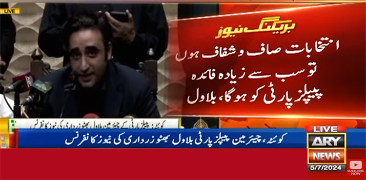 چیئرمین پیپلزپارٹی بلاول بھٹو زرداری نے کہا ہے کہ حالیہ الیکشن شفاف نہیں تھے لیکن مسترد کرتا ہوں کہ سب سے بڑی دھاندلی ہوئی، پیپلزپارٹی کیساتھ ہر الیکشن میں دھاندلی کی جاتی ہے۔