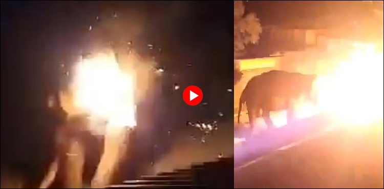 اس ویڈیو کو قریب میں موجود ایک گھر کی بالکونی سے ریکارڈ کیا گیا جس میں ہاتھی کے جسم میں لگی آگ اور اُس کو جنگل کی طرف جاتے ہوئے دیکھا جاسکتا ہے۔