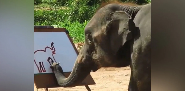 ہاتھی نے بڑی مہارت کے ساتھ اپنی سونڈ میں برش لے کر ہاتھی کی تصویر کو اس قدر مہارت سے پینٹ کیا کہ صارفین داد دیے بغیر نہ رہ سکے۔