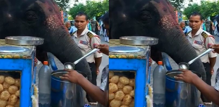 یہ ویڈیو بھارتی ریاست آسام کے شہر تیزپور کی ہے جہاں ہاتھی سڑک کنارے اسٹال سے گول گپے کھا رہا ہے۔