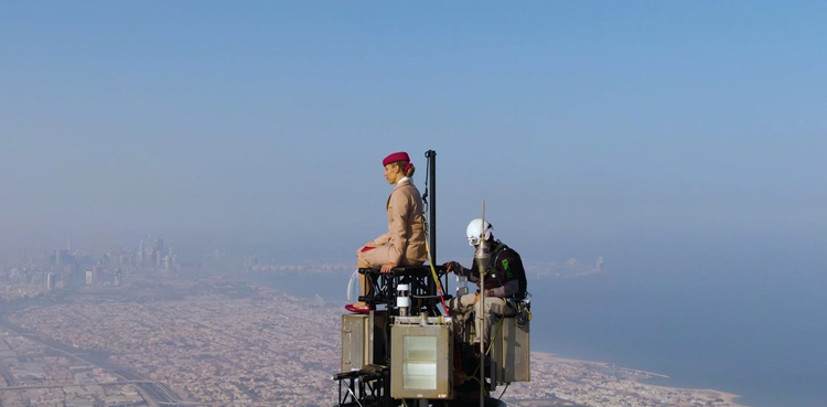 ایمرٹس ایئر لائن کے لیے ایک خاتون ماڈل کو فضائی میزبان کے روپ میں برج خلیفہ کی فلک بوس چوٹی پر کھڑا کیا گیا۔ ماڈل کے ہاتھ میں پلے کارڈ دیے گئے جس میں یہ لکھا تھا: