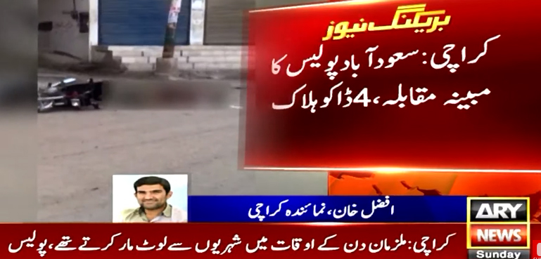 کراچی کے علاقے سعود آباد میں مبینہ پولیس مقابلے میں چار ڈاکو مارے گئے ہیں جب کہ پولیس اہلکار سمیت تین افراد زخمی ہوئے ہیں۔
