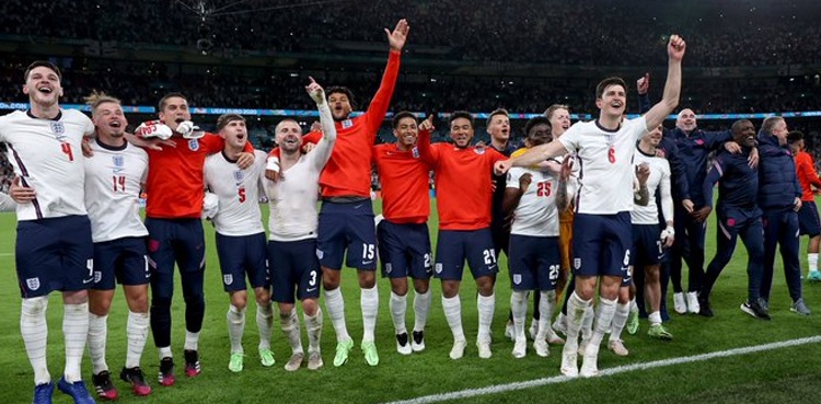 تفصیلات کے مطابق انگلینڈ نے پچپن سال کے طویل وقفے کے بعد فٹبال کے کسی بڑے بین الاقوامی ٹورنامنٹ کے فائنل میں رسائی حاصل کرلی