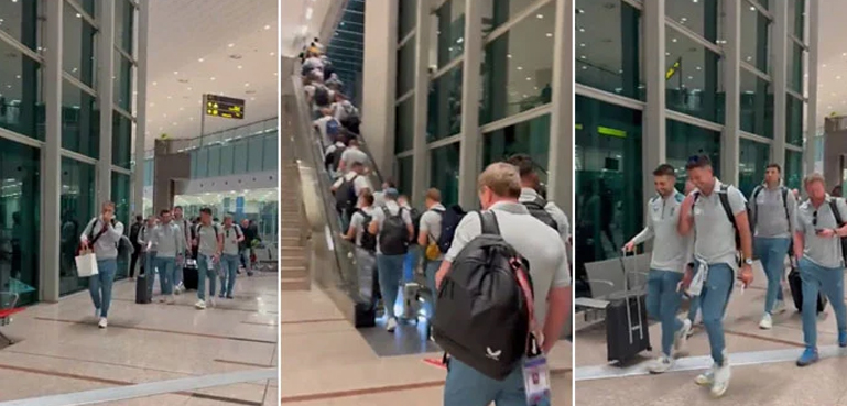 اے آر وائی نیوز کے مطابق انگلینڈ کی کرکٹ ٹیم کپتان بین اسٹوکس کی قیادت میں ہفتہ اور اتوار کی درمیانی شب دبئی سے غیر ملکی پرواز کے ذریعے پاکستان پہنچ گئی۔ ٹیم کو ایئرپورٹ سے ہوٹل پہنچایا گیا۔