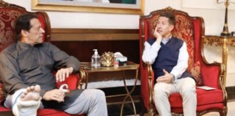 زمان پارک میں برطانوی ہائی کمشنر کرسچن ٹرنر نے چیئرمین پی سی بی رمیز راجہ کے ہمراہ عمران خان سے ملاقات کی۔