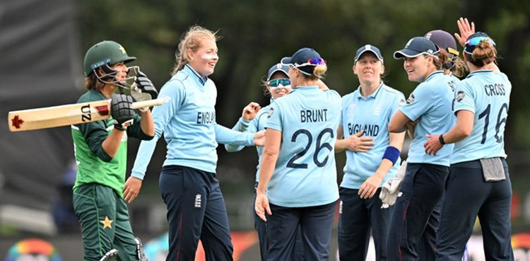 نیوزی لینڈ کے ہیگلی اوول میں کھیلے گئے ورلڈکپ کے گروپ میچ میں انگلینڈ نے ٹاس جیت کر پہلے پاکستان ویمنز ٹیم کو بلے بازی کی دعوت دی، انگلش بولرز میچ کے آغاز سے ہی قومی ٹیم پر حاوی رہے اور وقفے وقفے سے پاکستان کی وکٹ حاصل کرتے رہے۔