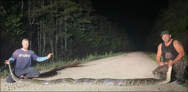 فلوریڈا: امریکی ریاست فلوریڈا میں شکاریوں نے دنیا کا سب سے بڑا سانپ پکڑ لیا جسے دیکھنے والے خوفزدہ ہوگئے۔