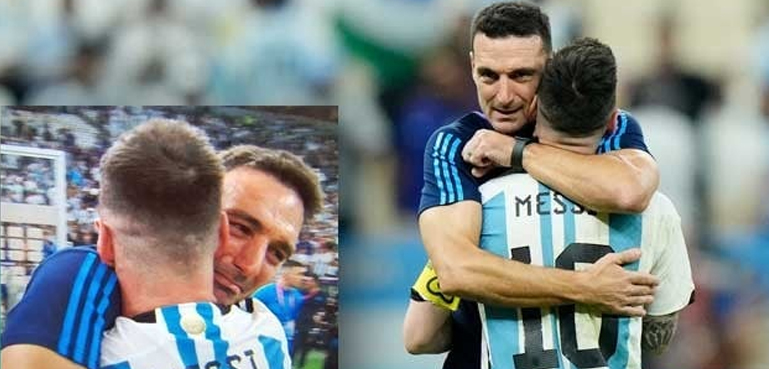 ؎سیمی فائنل میں کروشیا کو شکست دے کر فیفا ورلڈ کپ کے فائنل میں پہنچنے کی خوشی میں ارجنٹائن کے کپتان لیونل میسی اور کوچ لیونل اسکالونی اپنے جذبات پر قابو نہ رکھ سکے اور جب آپس میں گلے ملے تو خوشی کے مارے ان کی آنکھیں چھلک پڑیں۔