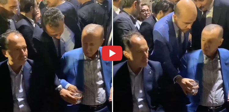 ویڈیو میں دیکھا جاسکتا ہے کہ عوامی اجتماع میں صدر اردگان نے اپنے محافظ سے پانی پینے سے انکار کر دیا اور اسے واپس کر دیا تاہم اپنے بیٹے بلال اردگان کے ہاتھ سے گلاس لے کر پانی پی لیا۔