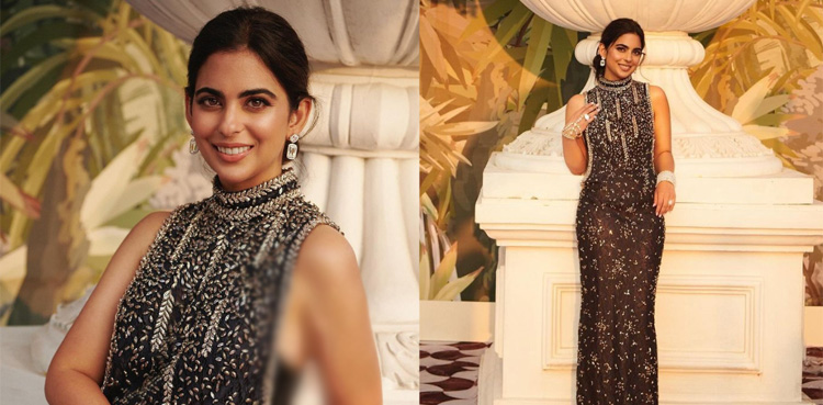 ایشا امبانی نے اپنے بھائی اننت امبانی کی شادی سے پہلے کی شاندار تقریب میں ایک ہیروں سے مزیّن سیاہ رنگ کا گاؤن پہنا ہے جس کی دھوم مچی ہوئی ہے۔ یہ لباس دیکھنے میں نہ صرف بہت خوبصورت بلکہ کافی قیمتی بھی ہے۔