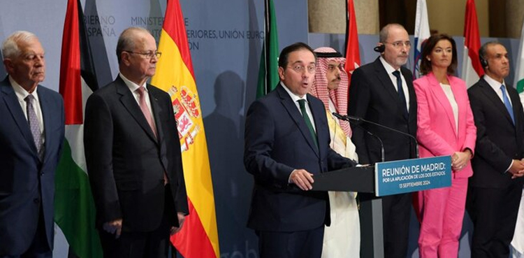 ہسپانوی وزیر خارجہ جوز مینوئل الباریس نے صحافیوں کو بتایا کہ دو ریاستی حل پر عمل درآمد ہی واحد راستہ ہے ہم فلسطینیوں اور اسرائیلیوں کے درمیان تشدد کے نہ ختم ہونے والے سرکل سے نکلنے کے لیے غزہ میں جنگ کے خاتمے کے لیے ایک اور دباؤ بنانے کے لیے مل رہے ہیں۔